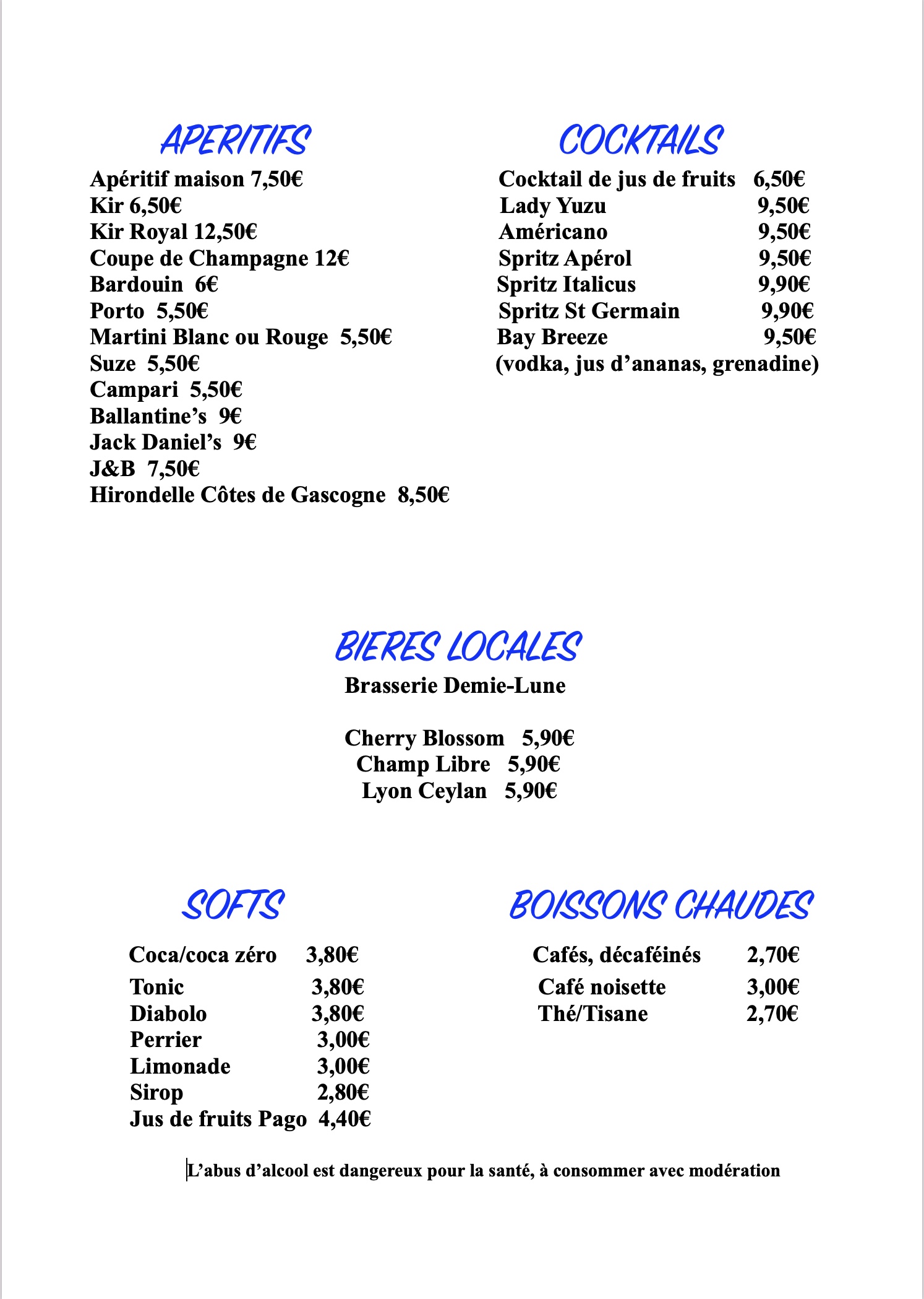 Nous sommes fermés pour congés d'Hiver du 9/02 au 16/02 inclus, ré ouverture le mardi 17 Février au déjeuner